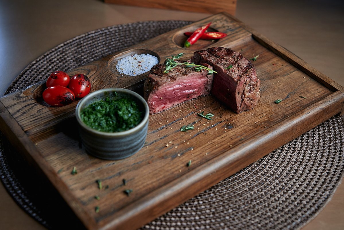 Мы предлагаем блюда нескольких видов кухонь: русской, кавказской (а именно грузинской), европейской (средиземноморской), из которых самой популярной, пожалуй, является европейская. Наши повара знают, как правильно сохранить натуральный вкус основных ингредиентов (мяса, рыбы, овощей), не перебивая его вкусом специй. Вместе с тем у нас готовят авторские блюда. Оригинальные блюда, придуманные нашим шеф-поваром, смогут удивить и приятно порадовать даже заядлого любителя отведать чего-нибудь нового. Мы предлагаем вам оценить новые грани в кулинарном деле!